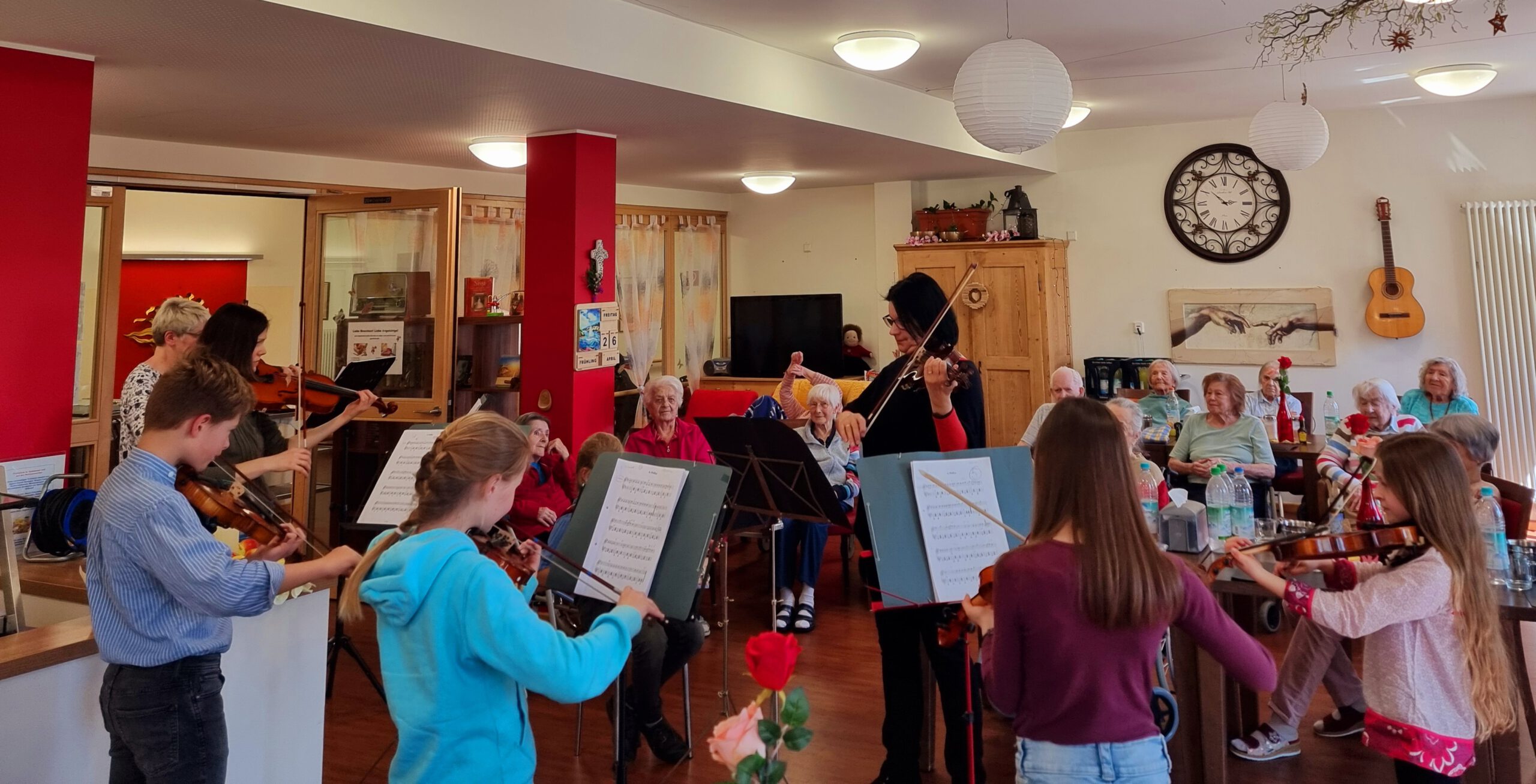 Herzlichen Dank an die Musikschule Emertsham mit Ihrem „Chaotenorchester“, dass in allen unseren Wohnbereichen für unsere Bewohner ein kleines Konzert zum Besten gab. Mit einem vielseitigen Programm bot die Musikgruppe ein kurzweiliges Auftritt für unsere Bewohner.