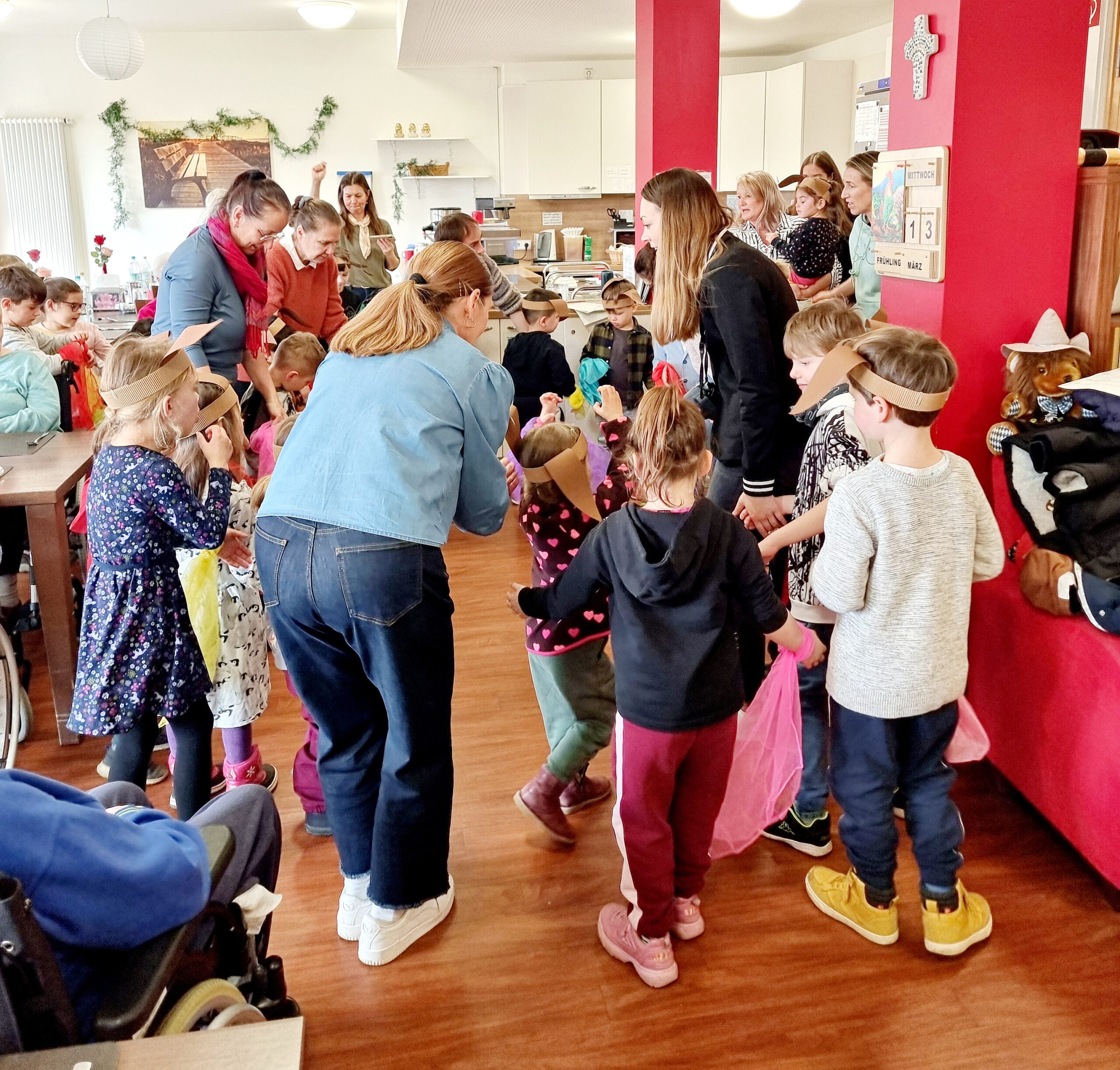 Sie verzauberten unsere Bewohner mit Frühlings- und Osterliedern. Mit ihren Tänzen brachten sie Schwung und Freude in die Zimmer der Bewohner. Am Ende beschenkten die Kinder jeden Bewohner mit selbst gebastelten Osterhasen. Wir waren alle sehr gerührt, ein breites lächeln erschien auf den Gesichtern unserer Bewohner und Mitarbeiter.