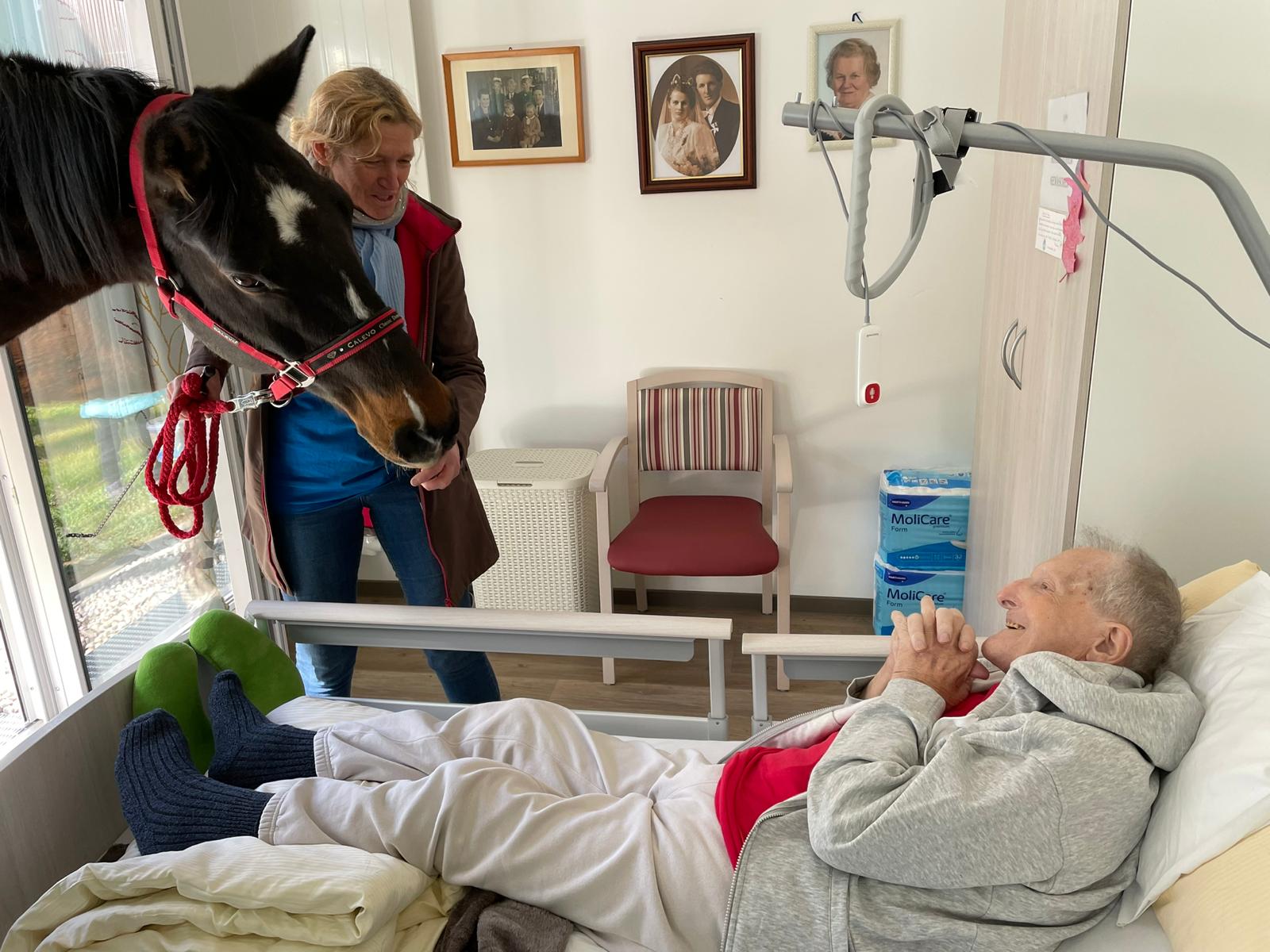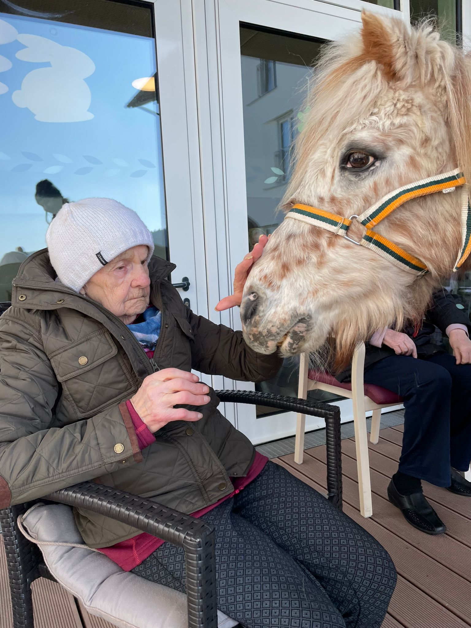 Wir wurden von dem Pferd Pepper und dem Pony Flecky besucht. Unsere Bewohner sind trotz kaltem Wetter zahlreich erschienen um die beiden Besucher zu sehen. Manche Bewohner wurden sogar von den Tieren in ihrem Zimmer besucht.