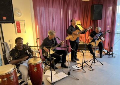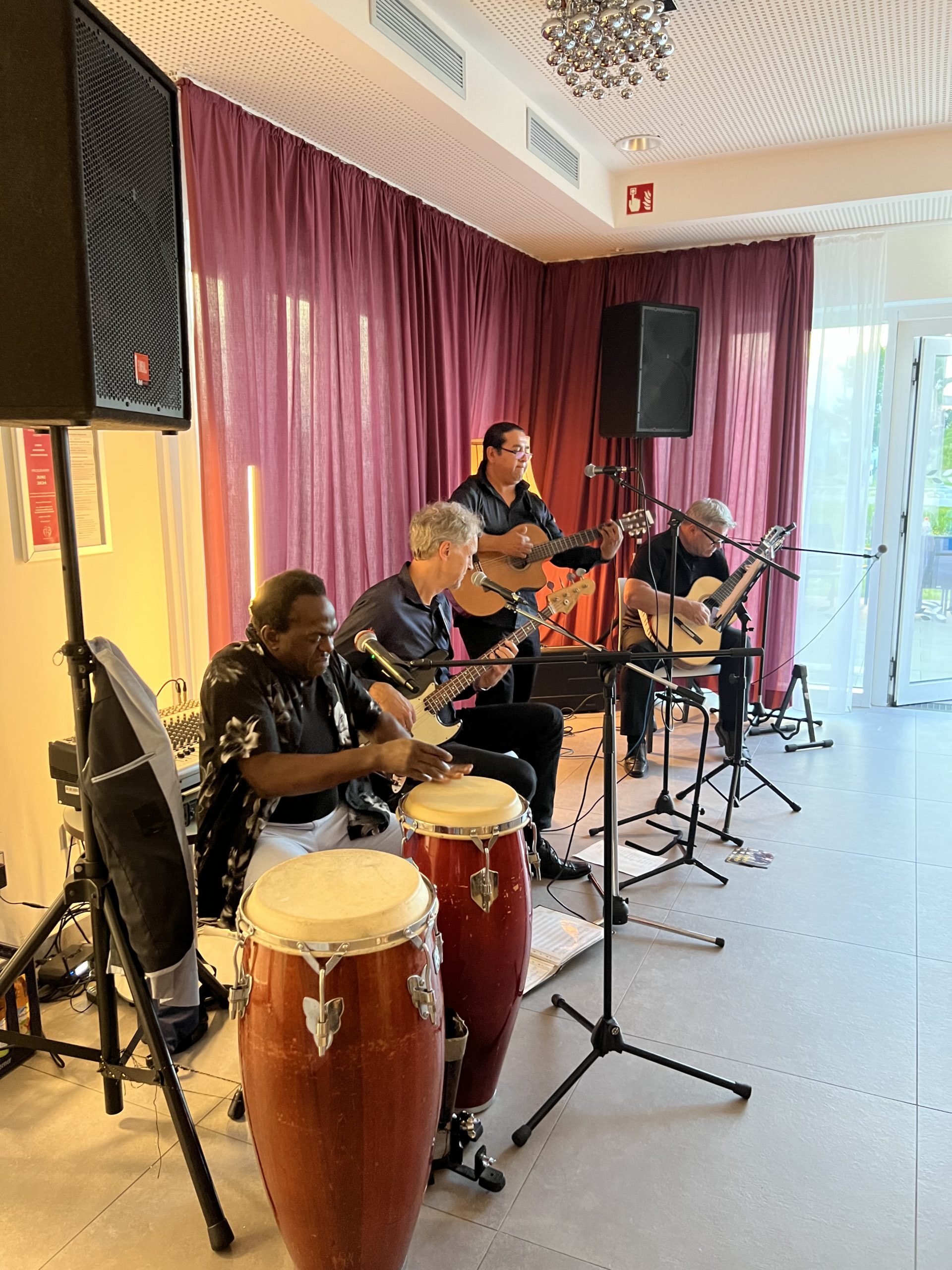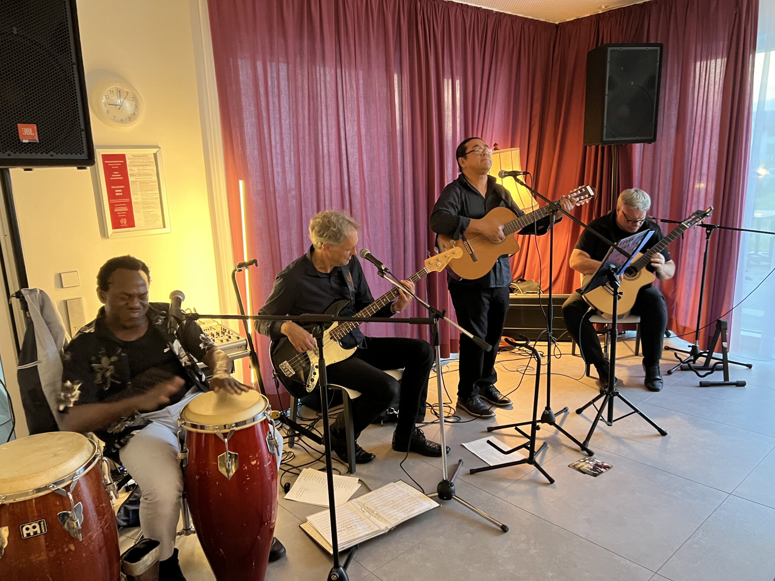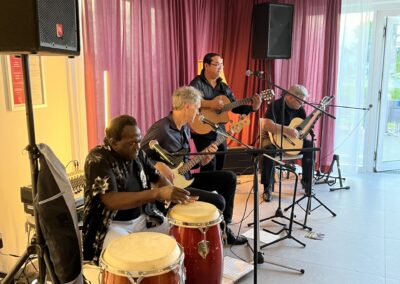 Neben Freddy Herrera begeisterten Hans Baltin am Bass, Karsten Lackmann an der Sologitarre und Roland Richardson an den Kongos. Das Quartett versteht es, das Publikum mit Musik und Witz in seinen Bann zu ziehen und versprüht dabei sehr viel Leichtigkeit und Lebensfreude – das konnten alle im Raum spüren und waren begeistert. Den ein oder anderen Song wie „Quantanamera“ konnten am Ende sogar noch viele Menschen mitsingen. Ein gelungener Abend, wie er sich gerne wiederholen darf.