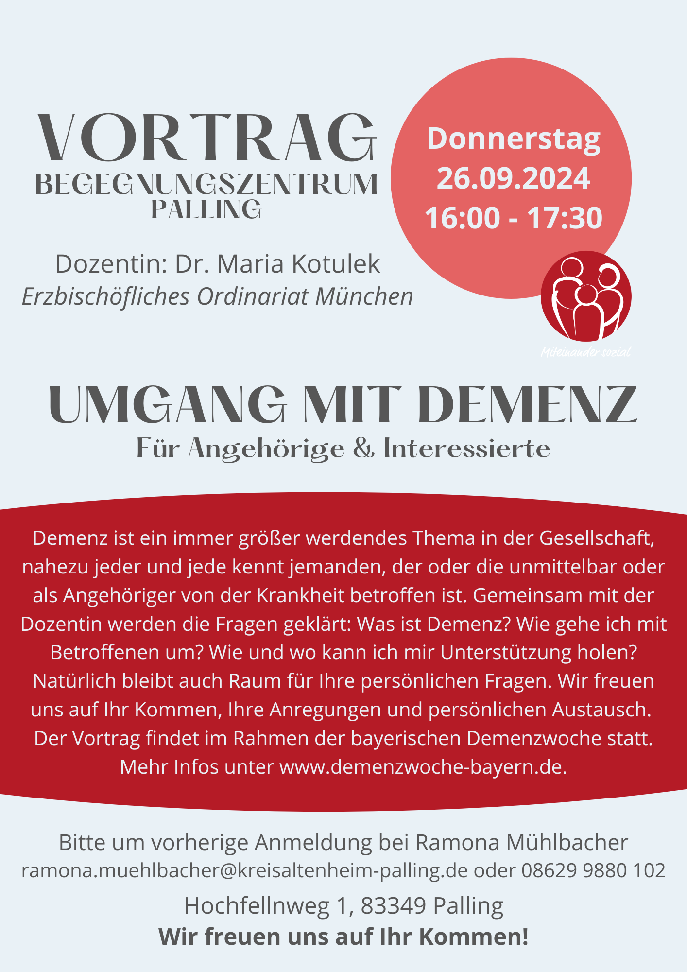 Vortrag Umgang mit Demenz im Begegnungszentrum Palling